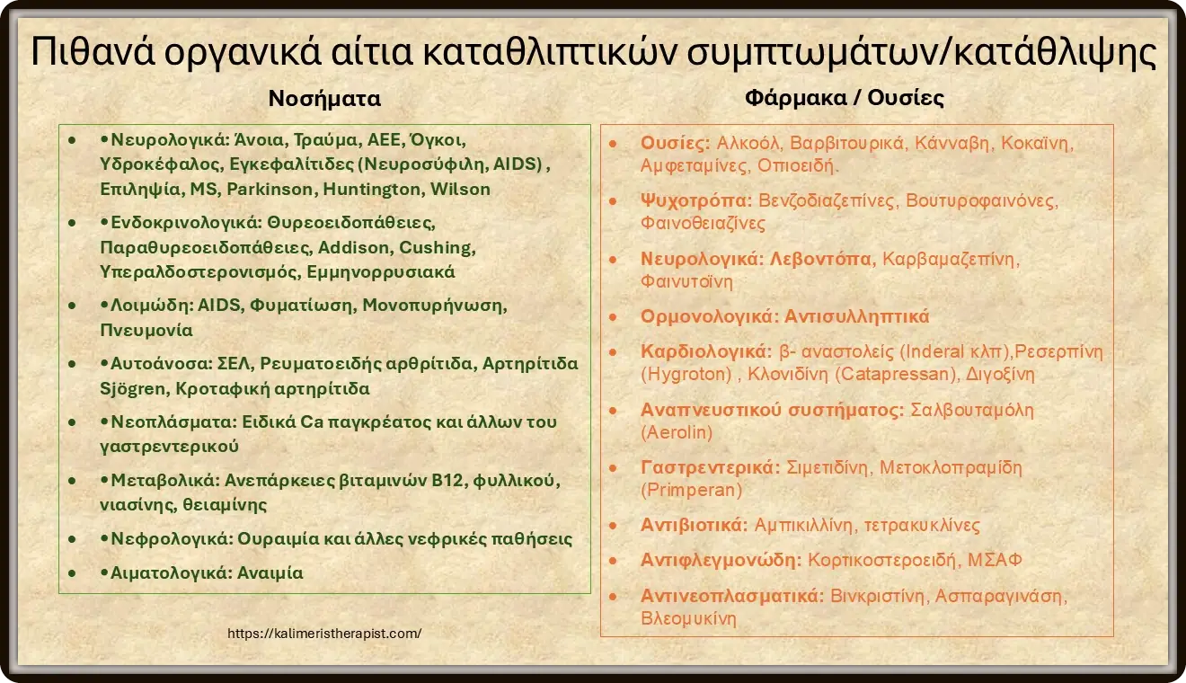 Η κλινική εικόνα της κατάθλιψης κωδικοποιείται σε 9 βασικά καταθλιπτικά συμπτώματα.